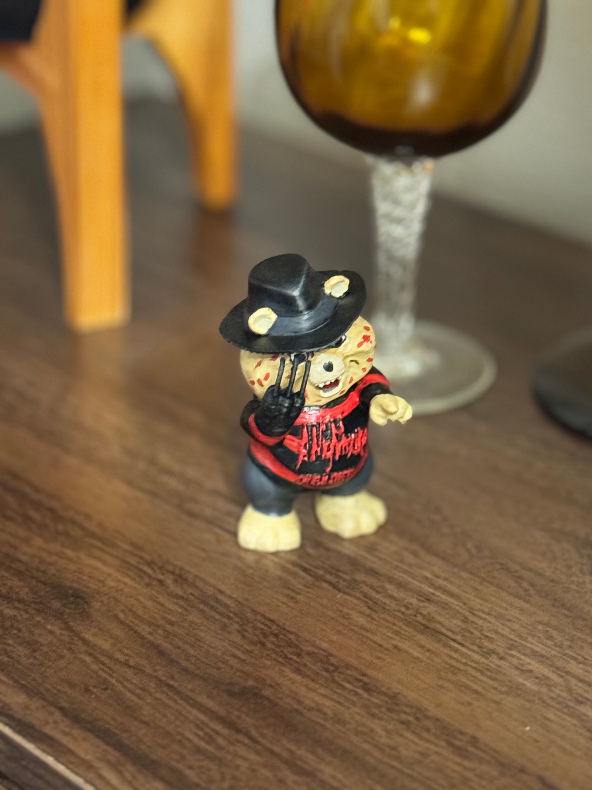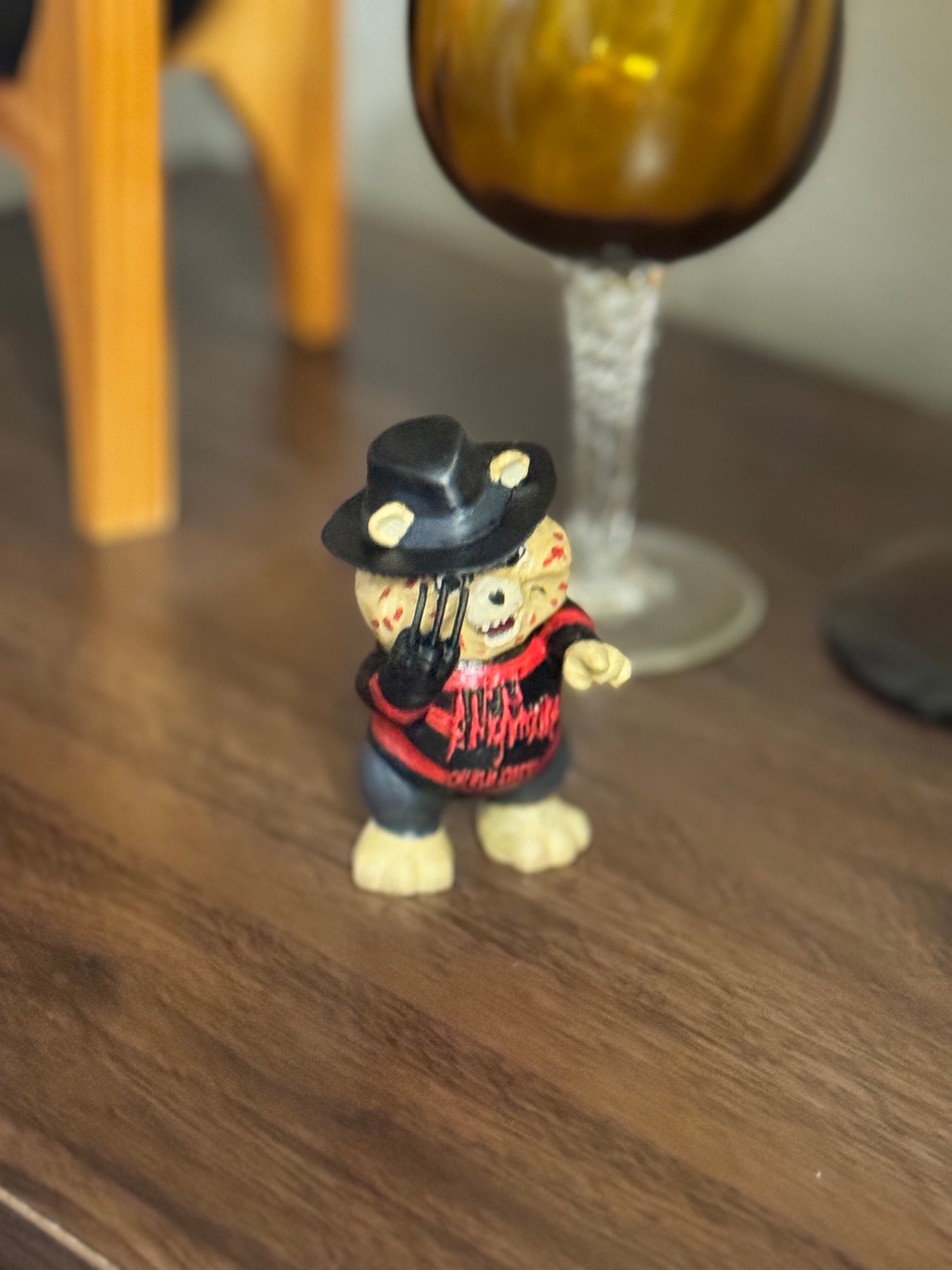 Bring a chilling twist to your collection with this 3D printed Freddy Kruger Bear. Expertly crafted to capture the iconic horror character’s eerie details, this model blends spooky charm with playful design. Perfect for fans of horror and unique decor, it adds a striking conversation piece to any room. Durable and finely detailed, this Freddy Kruger Bear is a must-have for collectors seeking something truly unforgettable.