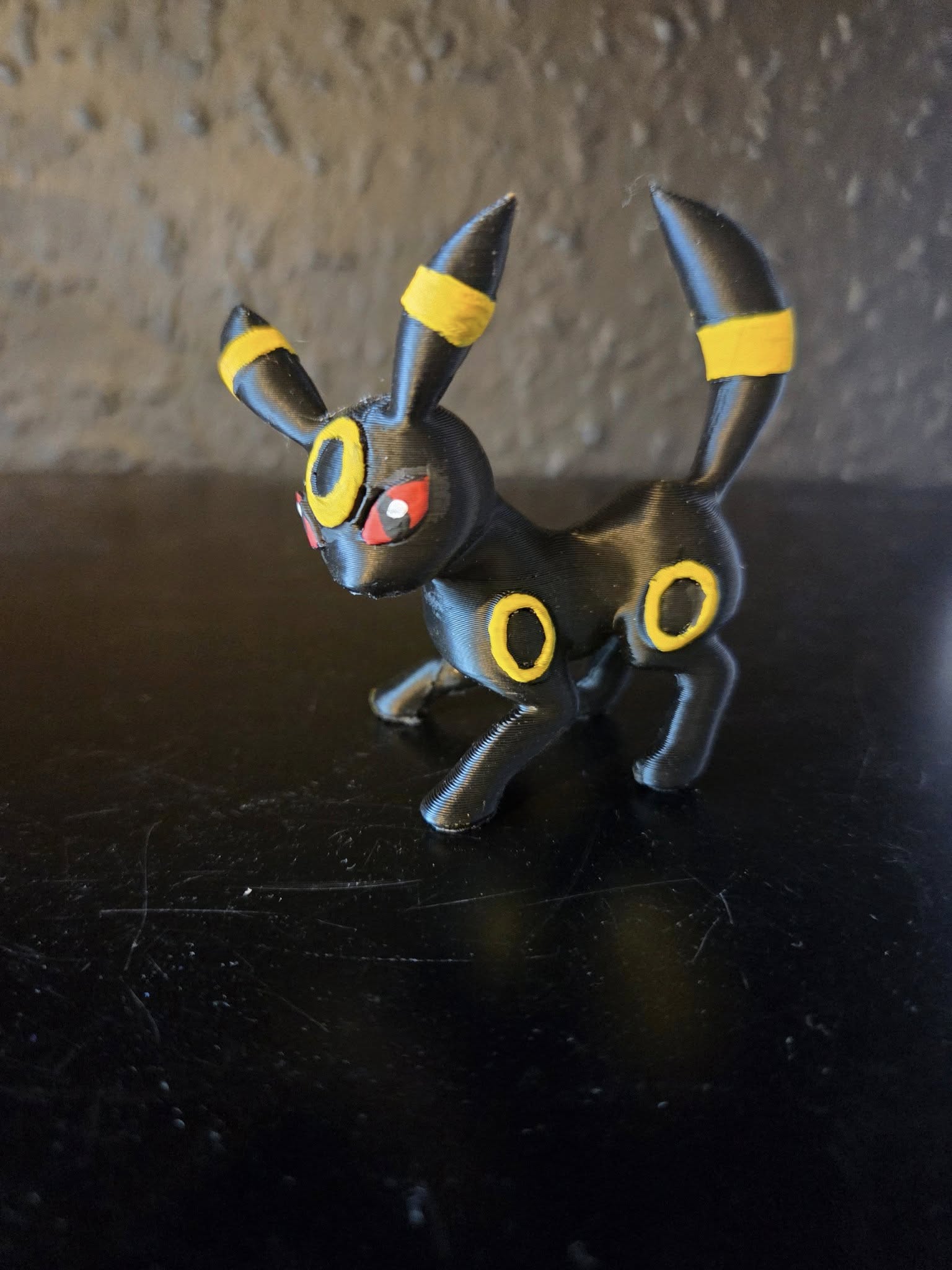 Bring your favorite Dark-type Pokémon to life with this exquisite 3D printed Umbreon model. Each figure is meticulously hand-painted to capture Umbreon's sleek black coat and luminous yellow rings with stunning accuracy. Perfect for collectors, gamers, and Pokémon enthusiasts looking to display their passion with a premium quality showpiece that stands out from mass-produced merchandise.